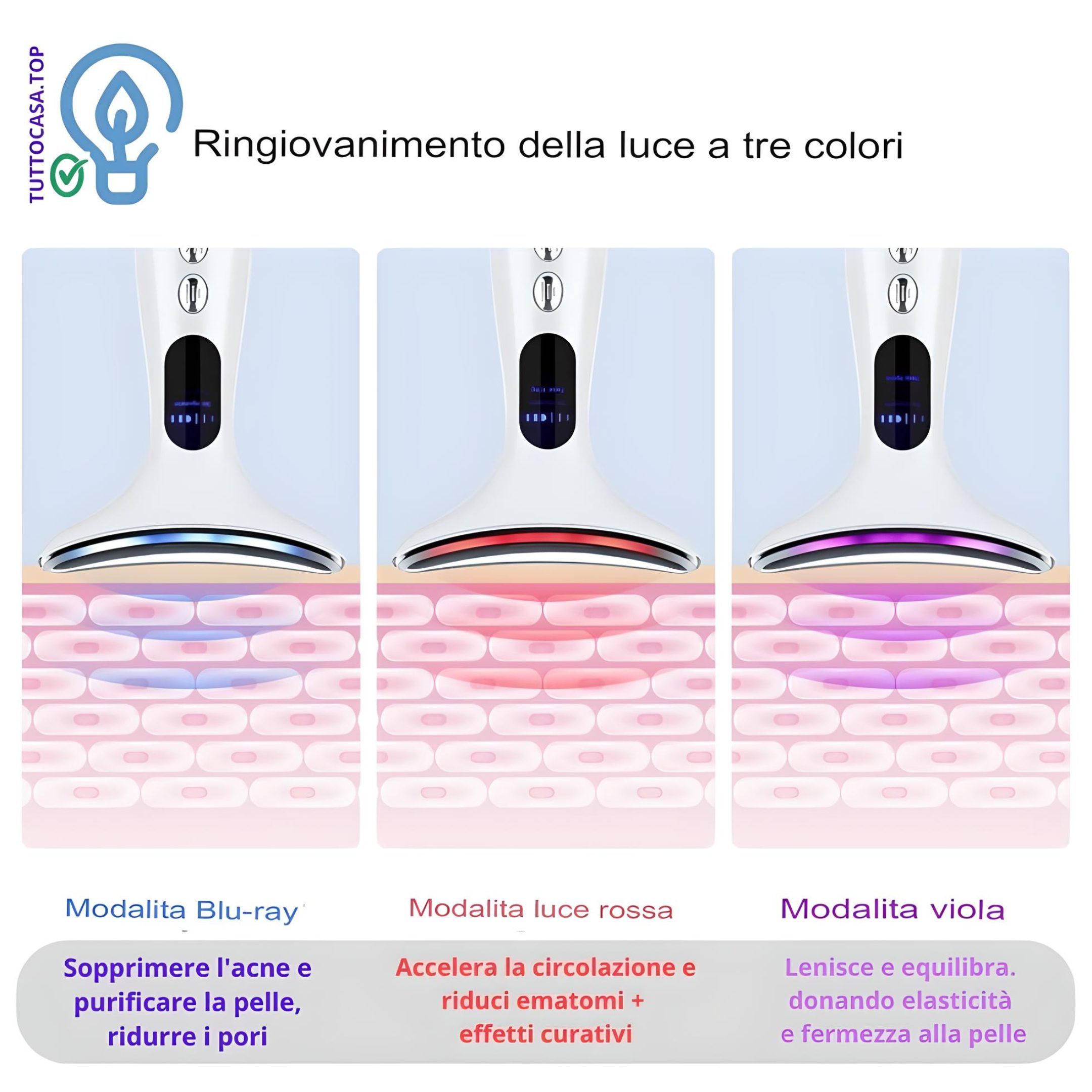 ● Quattro modalità, tre impostazioni di intensità, accelerano la circolazione sanguigna, promuovono la produzione spontanea di collagene, drenano i meridiani, restringono i pori e ringiovaniscono la pelle. @tuttocasaitalia